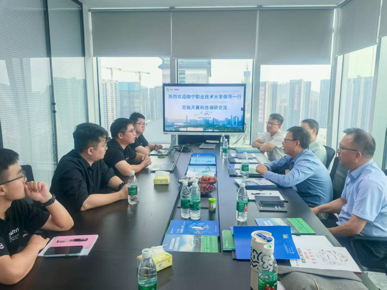 周旺对天翼航空深圳分公司的技术实力、发展成就以及在产教融合方面的创新实践给予高度评价。他表示,发展无人机相关专业是服务区域新兴低空经济产业的重要举措。南宁职大希望与天翼航空深圳分公司开展深度合作共建共享资源,共同开发优质教学资源库,共享先进实训设施与教学云平台。同时,借鉴行业前沿标准与先进院校经验,联合规划建设符合产业需求的无人机应用技术专业,携手打造服务于区域低空经济发展的高素质技术技能人才培养体系,为产业升级提供人才支撑。