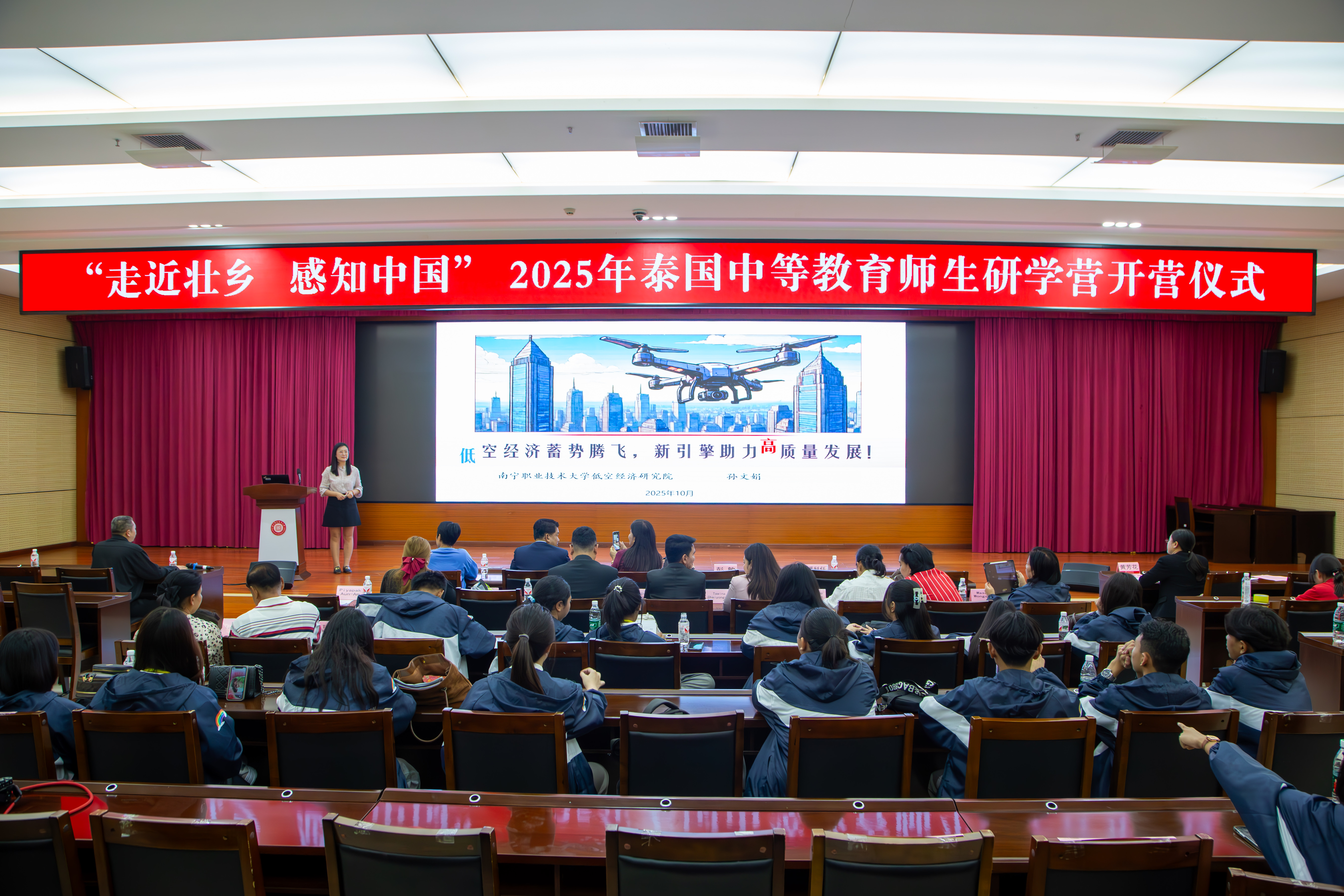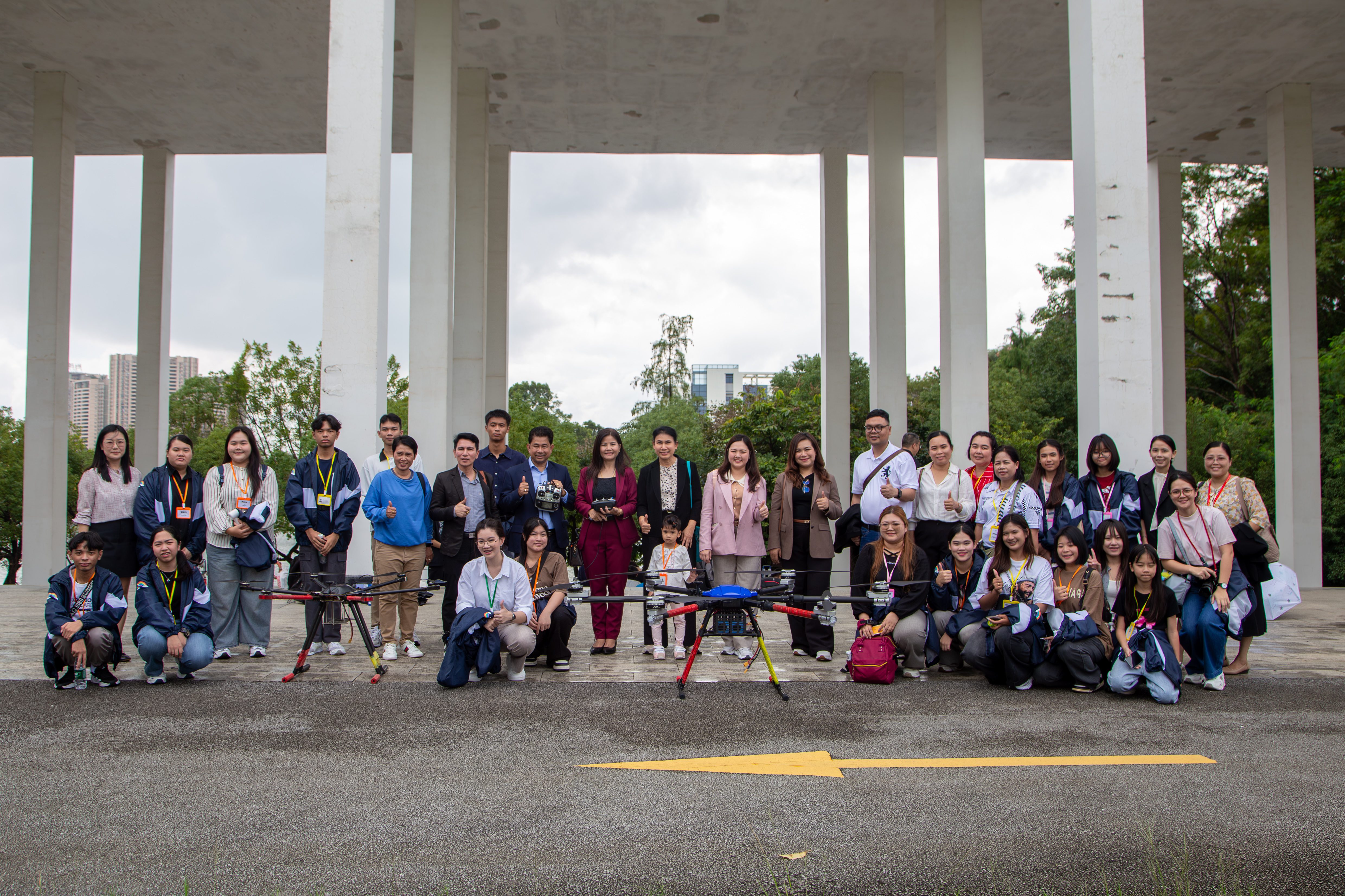 当低空科技遇见跨国情谊,当实践体验架起交流桥梁。10月14日上午,南宁职业技术大学金葵广场迎来了一群特殊的客人 ——2025年泰国佛统中等教育师生研学营的31名师生。在学校低空经济产业研究院的精心组织下,佛统府中等教育服务区办公室主任查雅努?苏茶娣博士带领13名泰国中等教育机构领导及18名泰国学生,沉浸式参与无人机体验及培训活动,在技术探索中深化中泰教育交流。