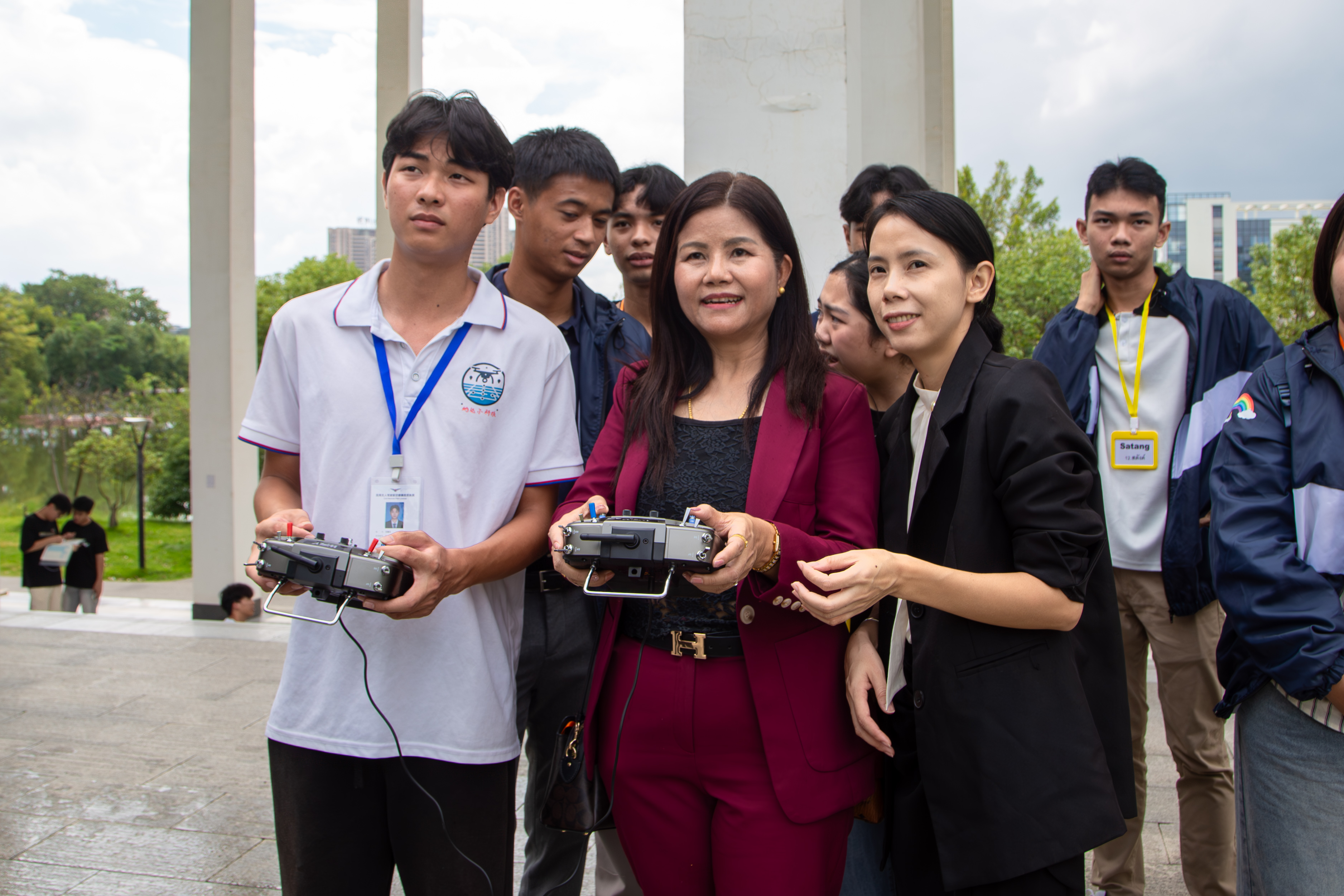 作为南宁职业技术大学推进中国— 东盟职业教育开放合作的重要实践,现场不仅划分了理论讲解区、模拟操作区与室外飞行区,还配备了资深技术人员组成专项指导组,全程提供双语教学与安全防护,确保国际师生的体验效果与活动安全。