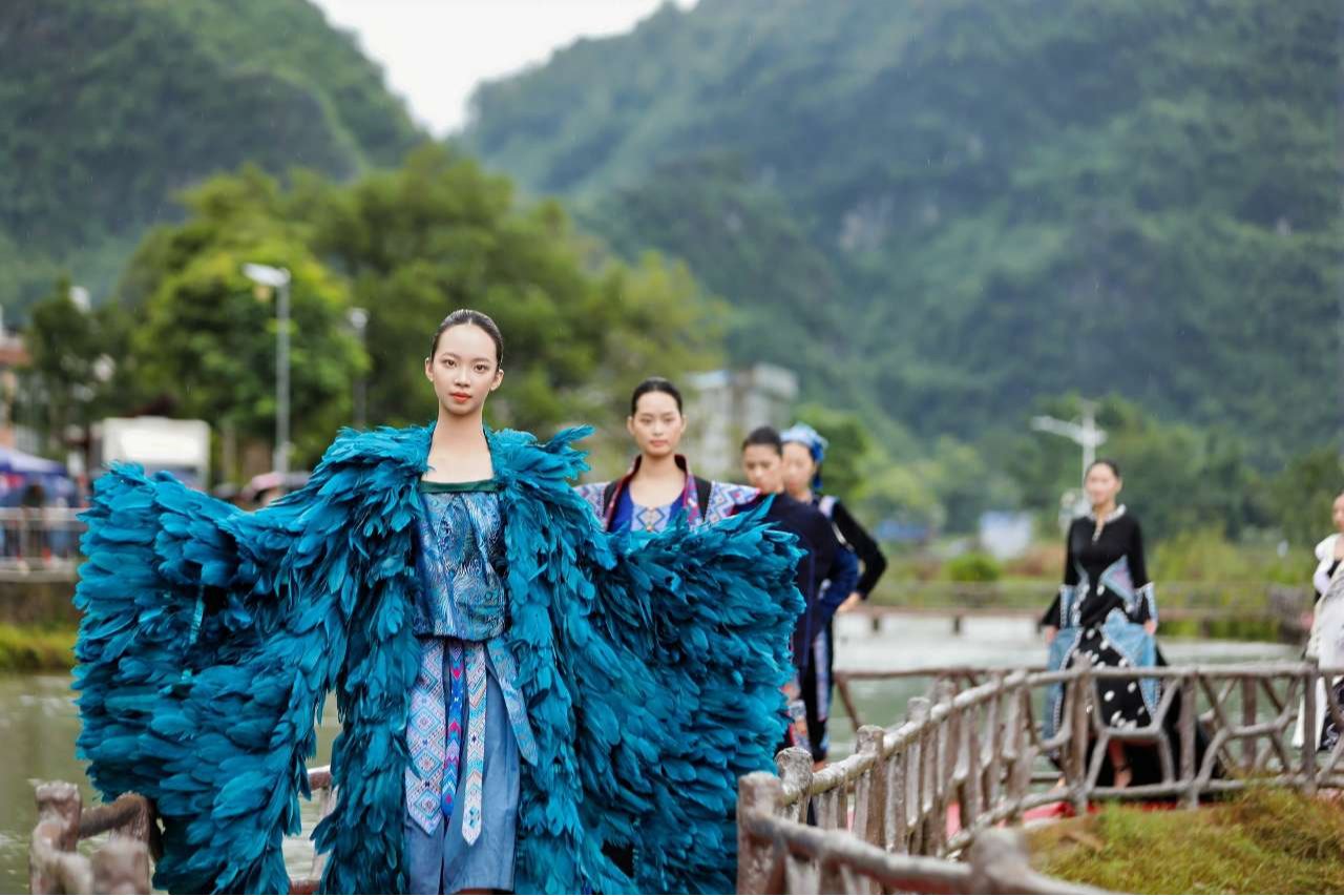 9月29日,广西百色市田阳区坡洪镇新建村的水田里,举办了一场别开生面的时装秀。村民与专业模特身着校企共创的民族服饰,沿着田间地头里山水环绕的T台从容穿梭,自然景观与时尚服饰相映成趣,让观众沉浸式感受乡村与潮流碰撞的独特魅力。这场由南宁职业技术大学艺术与传媒学院与校企合作企业联动的教学活动,来自该学院多年坚持的服务地方实践教学改革成果。