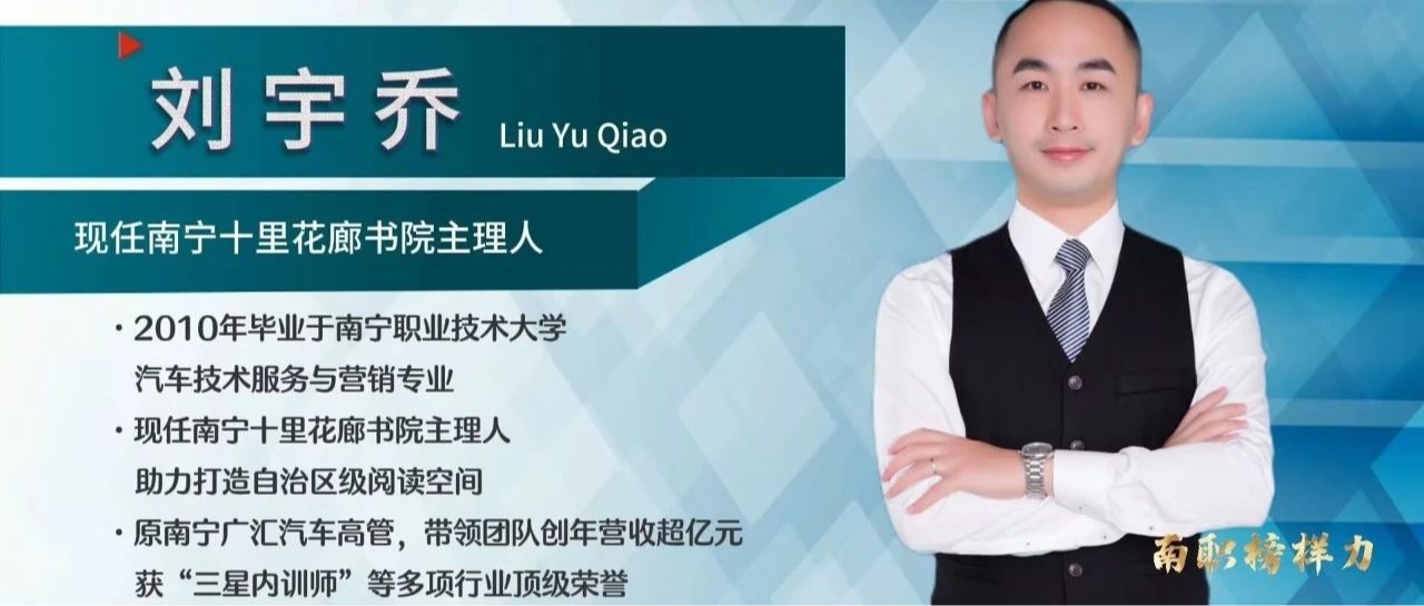 南宁职业技术大学倾情推出【南职榜样力】校友访谈栏目,通过对话不同年代、不同行业的校友,聆听他们的成长故事,分享他们的人生智慧,展现南职学子在时代浪潮中攻坚克难的担当,传递对专业匠心、生活真谛与社会责任的深度思考。他们的成长轨迹,既是母校精神的生动注解,也为在校学子树立可感、可学的标杆,让后来者从中汲取前行的力量,传承南职人的奋斗基因,再现母校与学子间那份深厚而绵长的情感。本期聚焦跨界逐梦人刘宇乔——他以服务为初心,从汽车4S店到书院,跨越产业变革,让人生故事续写新篇章。