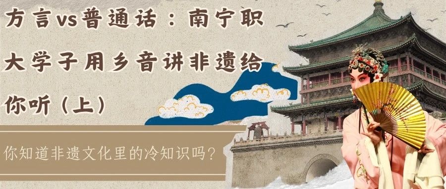 方言 一方水土的鲜活印记 非遗 古老智慧的生动传承 当方言邂逅非遗 会碰撞出怎样的奇妙火花 当乡音对话普通话 又会有怎样新鲜的感觉 今日 来自五湖四海的同窗们 相聚一方 邀你共赏—— 方言vs普通话:南宁职大学子用乡音讲非遗给你听
