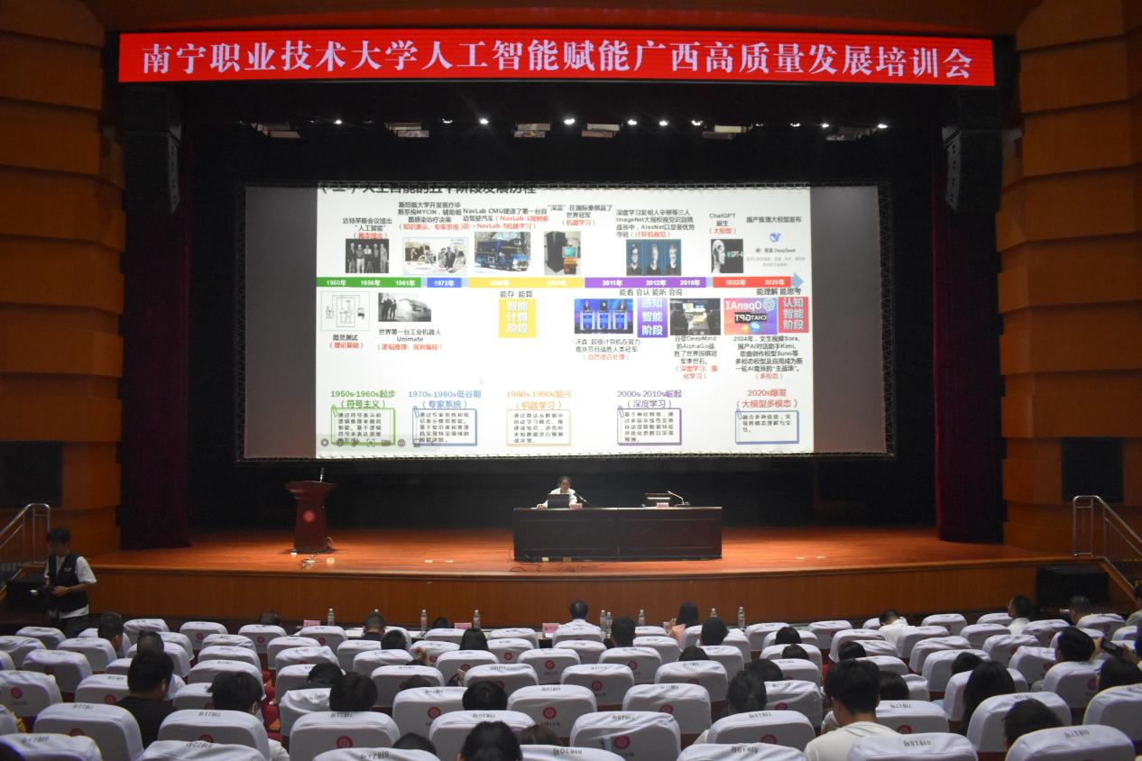 4月24日,我校在学校大礼堂举办人工智能赋能广西高质量发展培训会,特邀自治区大数据发展局场景和系统建设推进处处长何弄影担任主讲嘉宾。学校党委书记蹇兴超出席并主持会议。何弄影介绍了人工智能技术的发展和里程碑事件。她从大数据局的专业视角出发,深入剖析了广西在人工智能方面的战略布局,并通过翔实的案例全方位解读了广西在人工智能发展的各项举措,深入诠释“人工智能+”如何赋能千行百业,为广西高质量发展注入强劲...