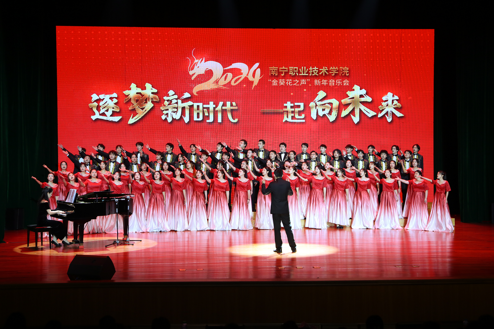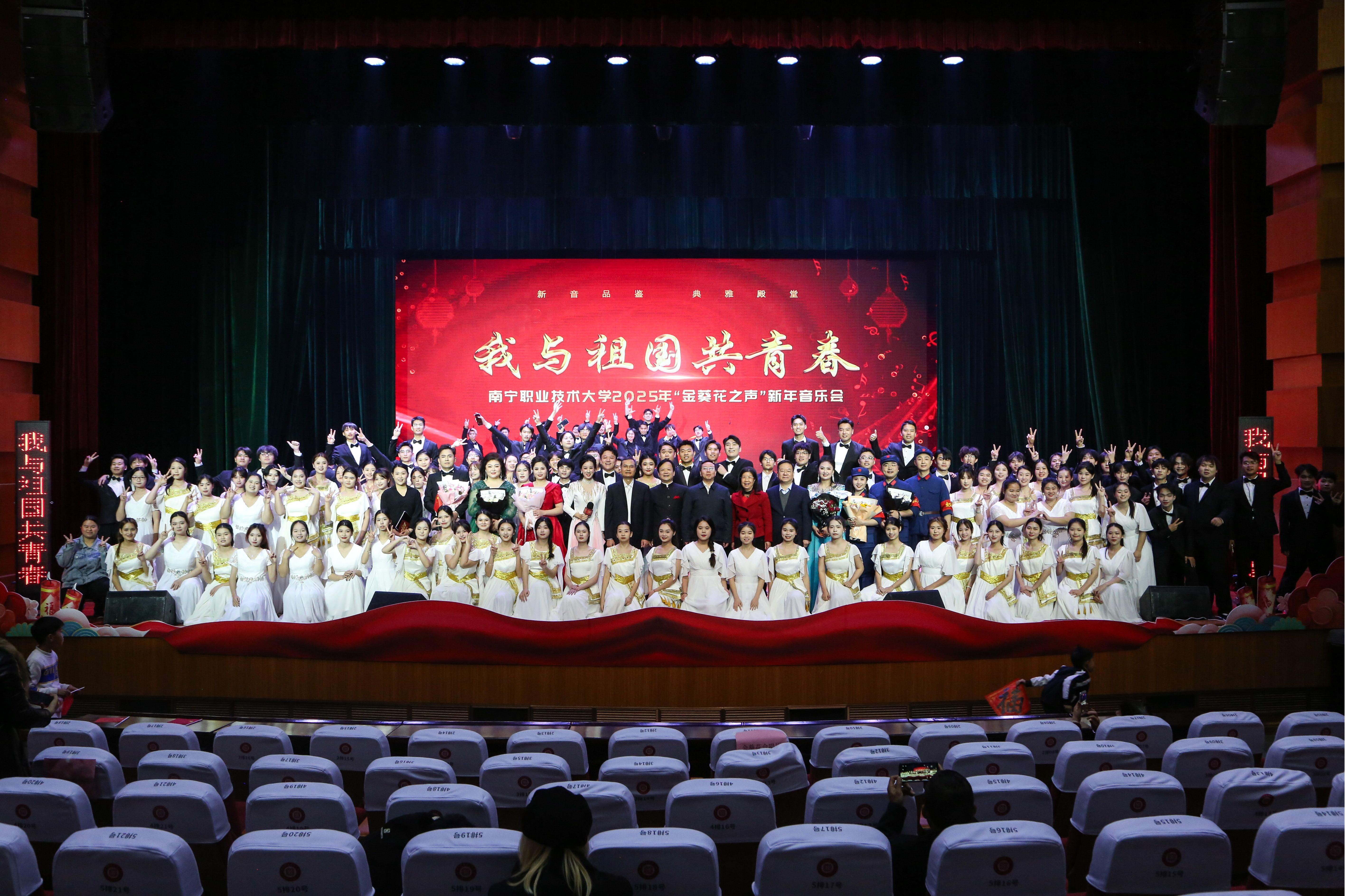 12月31日晚,我与祖国共青春——南宁职业技术大学2025年“金葵花之声”新年音乐会在会议中心大礼堂隆重举行。学校党委书记蹇兴超,党委副书记杨清源,党委常委、纪委书记罗桂全,党委常委、副校长万玉文,党委常委、副校长黄春波出席音乐会。蹇兴超在新年音乐会上致辞。他代表学校党委,向全体师生员工、离退休老同志、广大校友致以诚挚的新年祝福!向长期关心支持学校发展的社会各界朋友表示衷心的感谢!蹇兴超强调,过去的202...