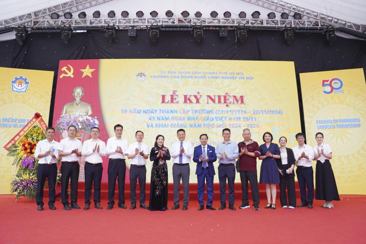 近日,越南河内工业职业大专学校隆重举办50周年校庆与教师节庆典活动,我校智能制造学院专业群负责人吴泊良博士、谭卫东教授等作为中国—越南电子信息现代工匠学院共建学校代表到现场参加庆典活动。庆典上,举行了盛大的颁奖授牌仪式,文艺表演精彩纷呈,活动现场洋溢着浓厚的节日氛围。在短视频汇报环节,视频生动呈现了学校50年来的辉煌发展历程,有力展示该校和南宁职大在中国—越南电子信息现代工匠学院等各方面国际化合作...