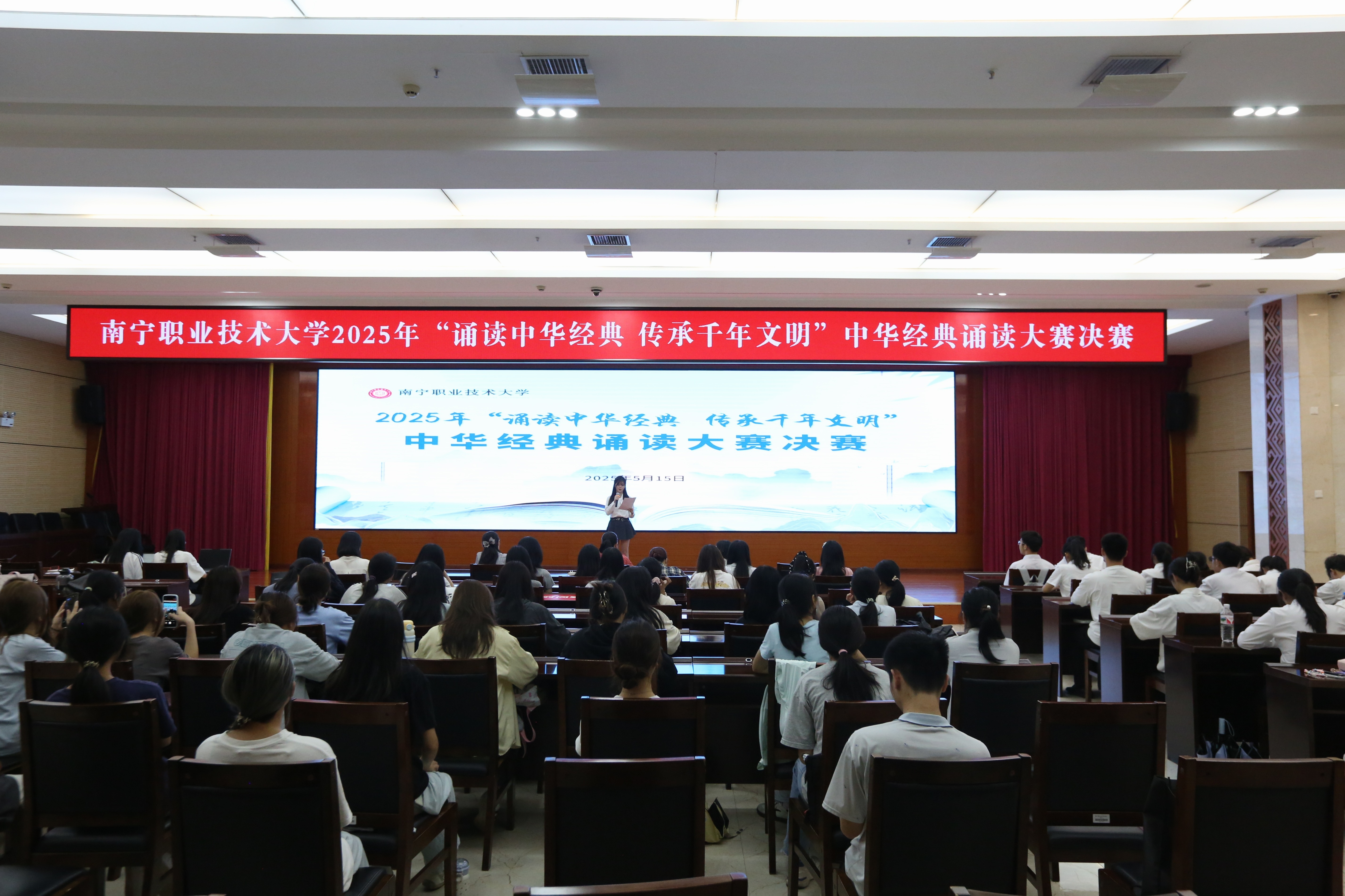 5月15日下午,南宁职业技术大学第七届科技文化艺术节系列活动之“诵读中华经典 传承千年文明”中华经典诵读大赛决赛在学校会议中心二号厅举行。来自10个学院的19支参赛队伍、68名选手参加本次决赛。赛场上,各参赛队伍以饱满的热情、生动的演绎和富有感染力的表现诵读经典名篇,生动诠释了经典作品的魅力与内涵,展现了我校学生对传统文化、古典诗词的深刻理解与独到诠释,为现场观众带来一场精彩纷呈的文化盛宴。经过激烈角逐...