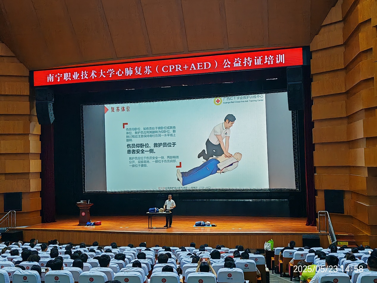 2025年6月为第24个全国安全生产月,今年的主题为“人人讲安全、个个会应急”。为筑牢校园安全防线,提升教职工应急救护能力,5月22日,我校携手红十字会于学校大礼堂开展心肺复苏公益持证培训,300名教职员工踊跃参与。培训采用“理论讲解+模拟实操+分组考核”的闭环教学模式,围绕心肺复苏(CPR)与自动体外除颤器(AED)规范操作展开。讲师以理论剖析结合场景演示,重点指导胸外按压技巧、除颤设备使用要点。实操环节中,讲师...